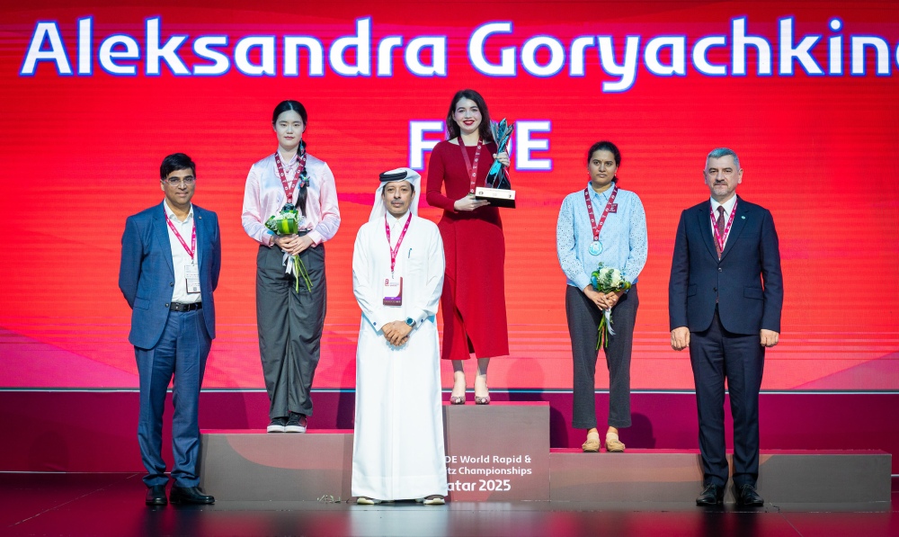 The 2025 World Blitz Championships concluded in Doha with two familiar World Champions in this discipline. Second place in the Open Blitz went to Nodirbek Abdusattorov, while Arjun Erigaisi and Fabiano Caruana share the bronze. In the Women’s Blitz, Anna Muzychuk took silver, while the bronze went jointly to Zhu Jiner and Eline Roebers.